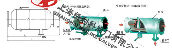 手動蝶閥開啟,即閥板平面與筒體軸線平行,(此時扳手亦與筒體軸線平行)排污閥關閉。此時水流從進口直接進入過濾網筒內部,經濾網過濾后由出口排出。