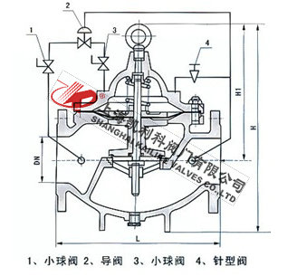 900X緊急關閉閥當出口壓力低于導閥設定的壓力時,導閥此時處于開通狀態,主閥上腔壓力與主閥出口壓力相等,進口與吃口存在壓差,水流經閥口出口流出,當消防泵氣泵時,或變平泵壓力升高時,超過導閥設定壓力,由主閥進口向導閥管控制室壓力升高,作用在彈簧壓力增大,向下壓緊,帶動閥芯下移,使導閥關閉,此時主閥進口壓力通過節流閥補充到主閥閥蓋上腔,因閥瓣受到向下壓力大于向上推力,主閥關閉。值得注意的是,進口壓力小于設定壓力是,主閥處于開啟狀態,進口壓力大于設定壓力,閥瓣關閉。