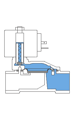 當(dāng)電磁閥電磁線圈通電時(shí),線圈激磁回路形成磁場(chǎng)并產(chǎn)生磁力,活動(dòng)鐵芯受電磁力的吸引克服了自重與彈簧的阻力而上升。當(dāng)工作壓力小于0.05Mpa時(shí),活動(dòng)鐵芯上移打開導(dǎo)閥直接拉動(dòng)主閥口膜片,形成通路;當(dāng)工作壓力大于0.05Mpa時(shí),通過首先打開導(dǎo)閥,使膜片上下腔產(chǎn)生壓力差,膜片在差動(dòng)力的作用下克服自重和閥芯彈簧而開啟隨即主閥口全開,斷開電源時(shí),導(dǎo)閥口在彈簧力的作用下關(guān)閉,閥芯膜片受向下的壓力而關(guān)閉主閥口,閥口斷流,電磁閥處于關(guān)閉狀態(tài)(常開閥與此相反)。
